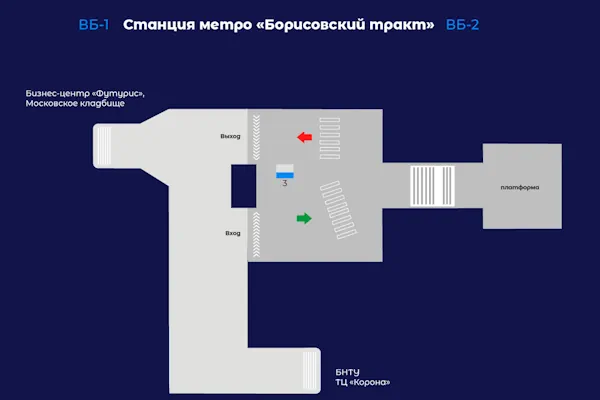 Расположение: Вход на станцию со стороны БНТУ, ТЦ «Корона», бизнес-центра «Футурис», г.Минск